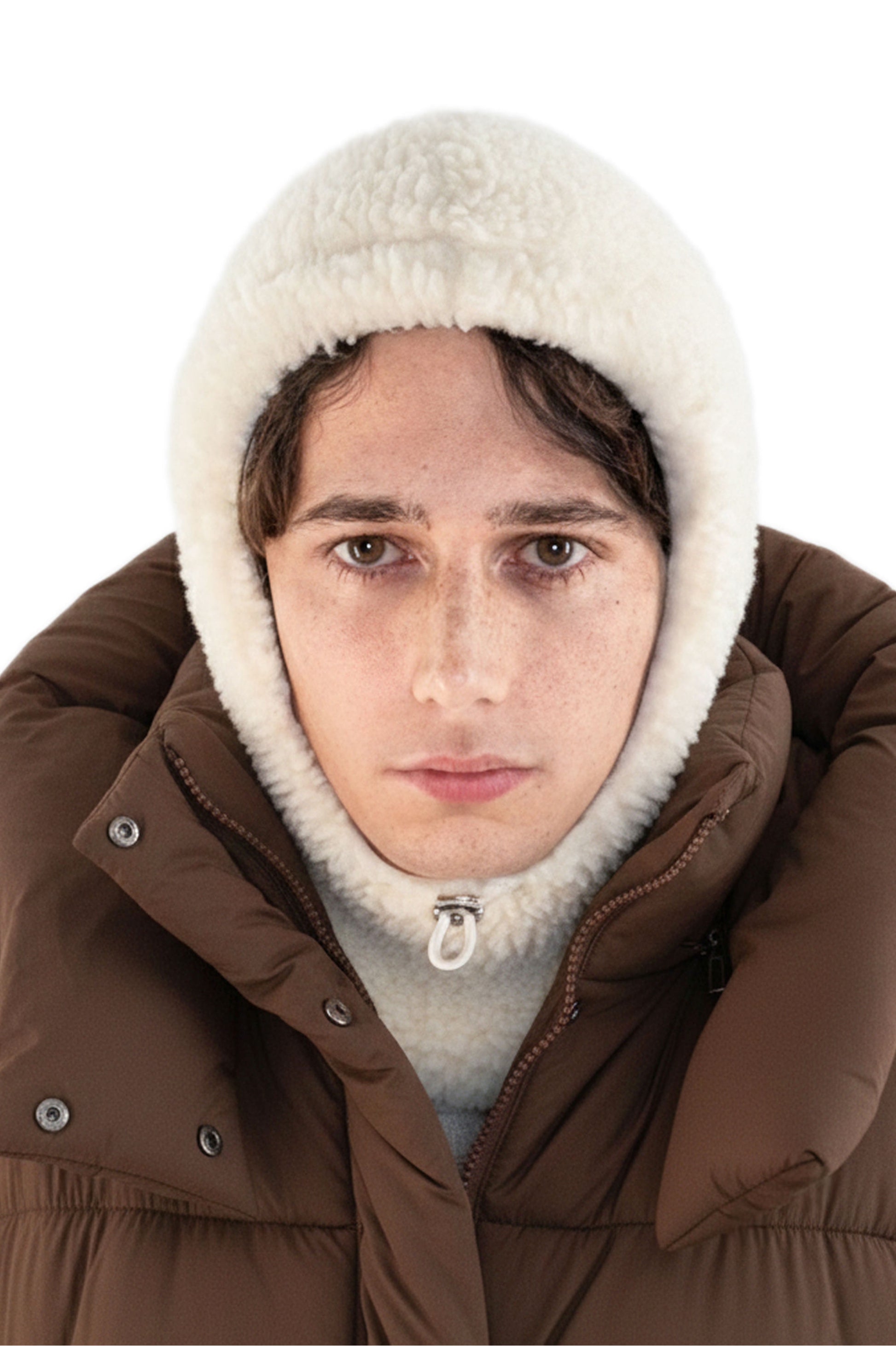 – Curly wool balaclava with organic cotton lining