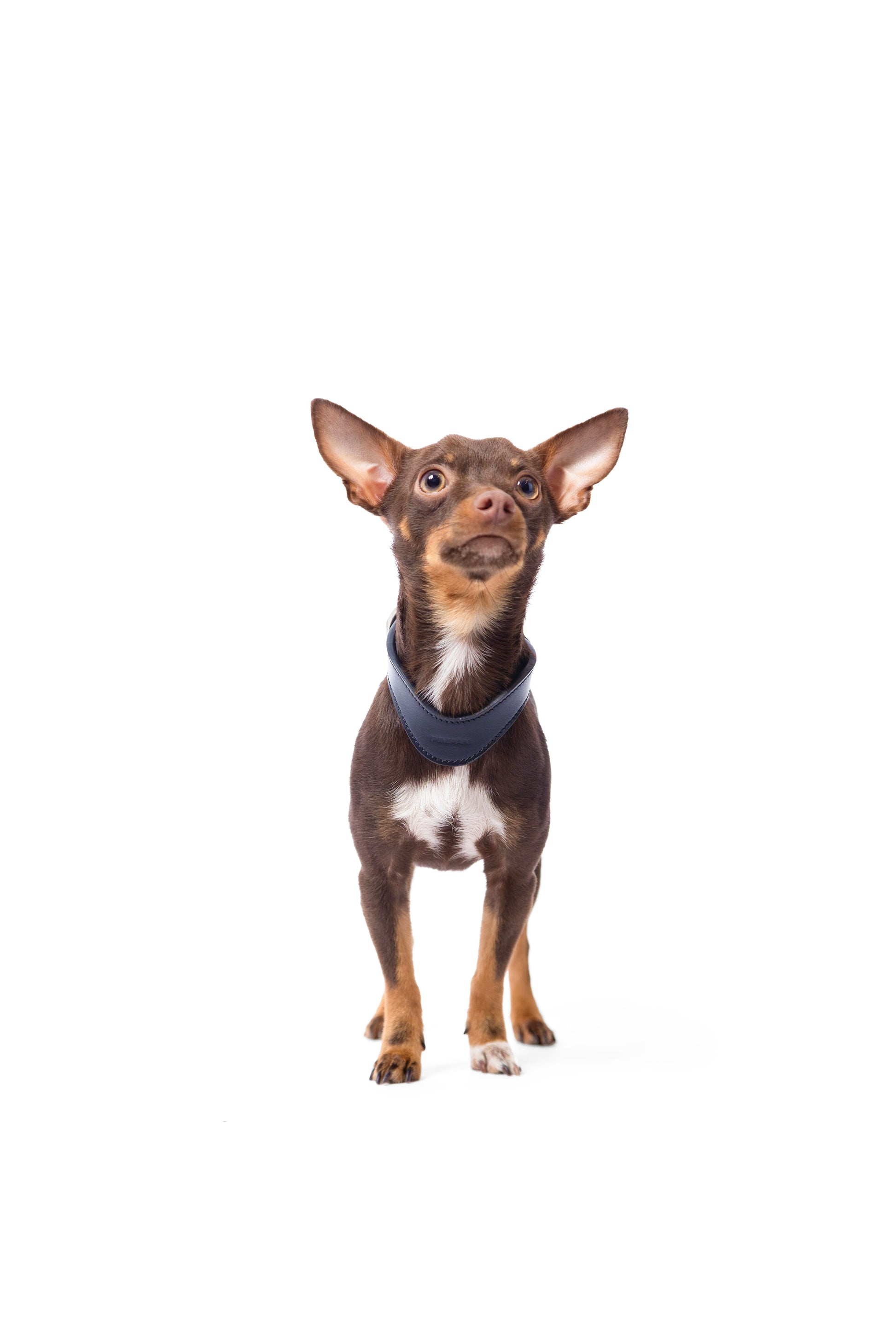 – Georges est un pinscher nain qui pèse 2,7 kg et porte le collier en taille XS