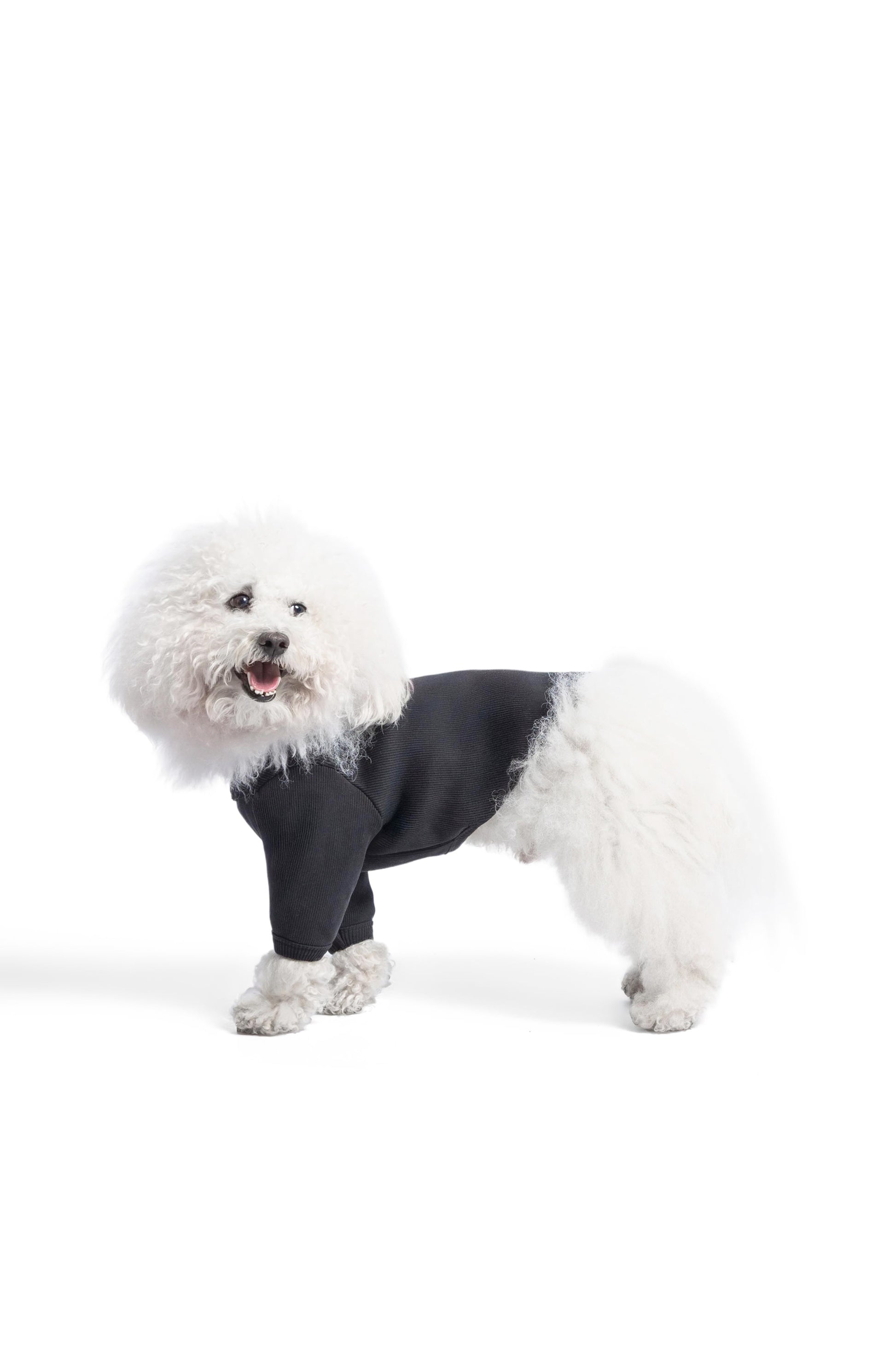 – Bilbo est un bichon bolonnais qui pèse 5 kg et porte le T-shirt noir en taille M (prendre en compte l'épaisseur des poils)